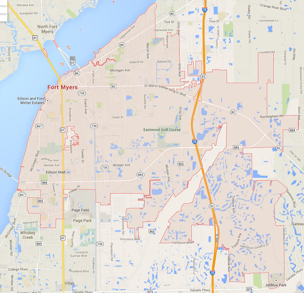 Navigate Fort Myers, Florida Map, map of Fort Myers, Fort Myers Florida regions map, Fort Myers satellite image, towns map, road map of Fort Myers.
