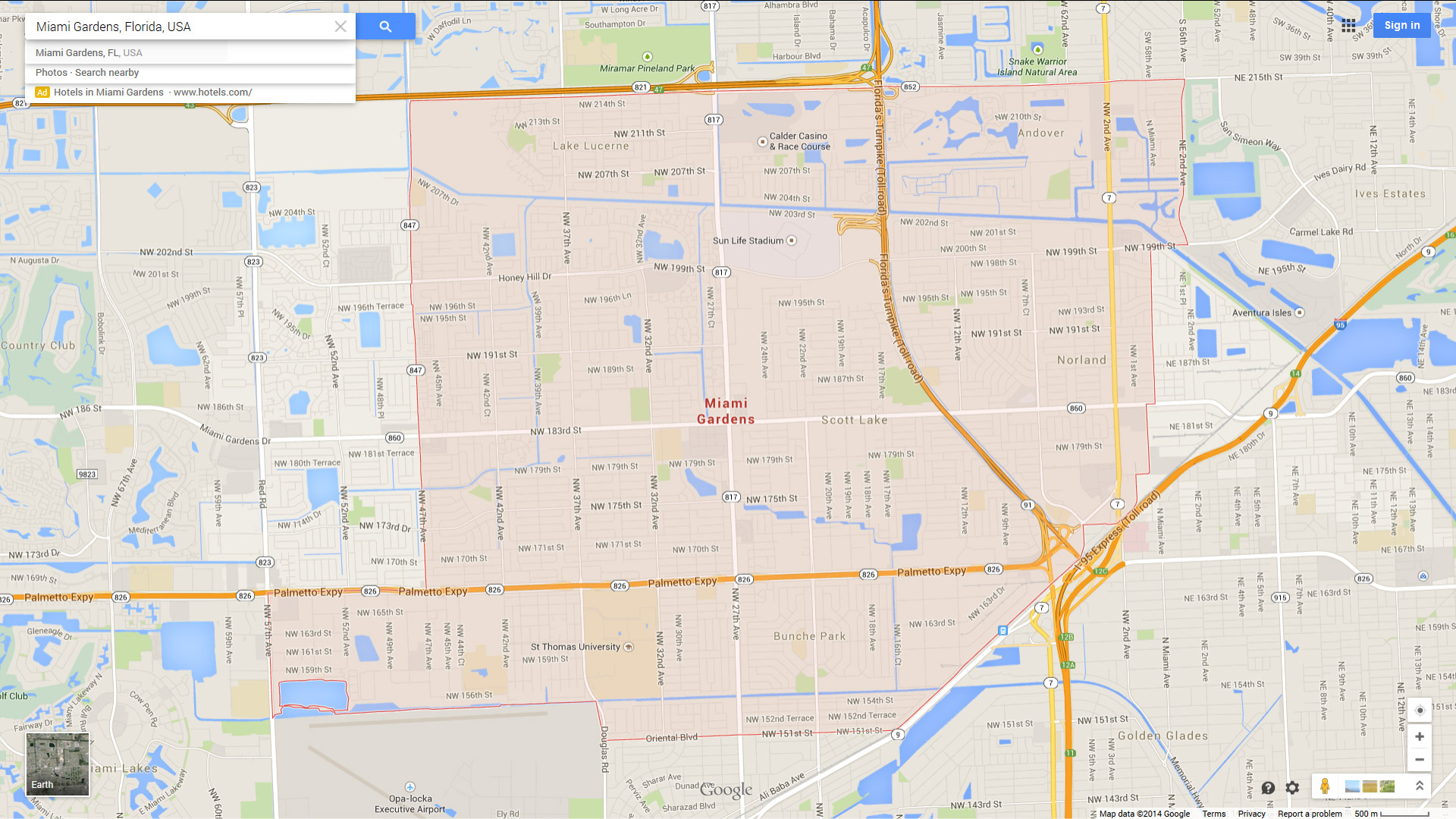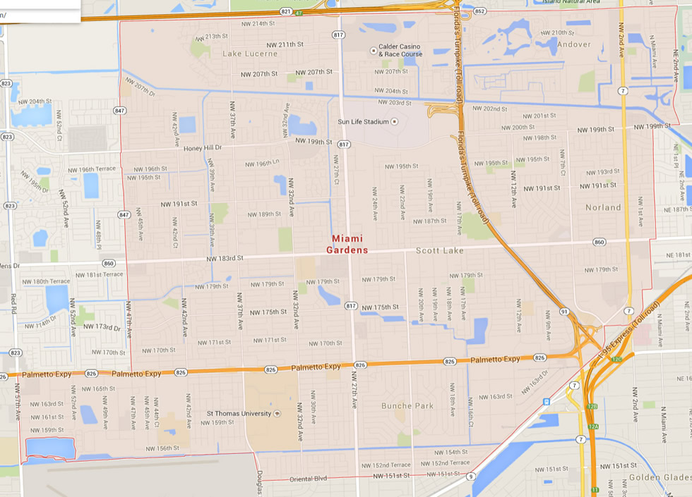 Navigate Miami Gardens, Florida Map, map of Miami Gardens, Miami Gardens Florida regions map, Miami Gardens satellite image, towns map, road map of Miami Gardens.
