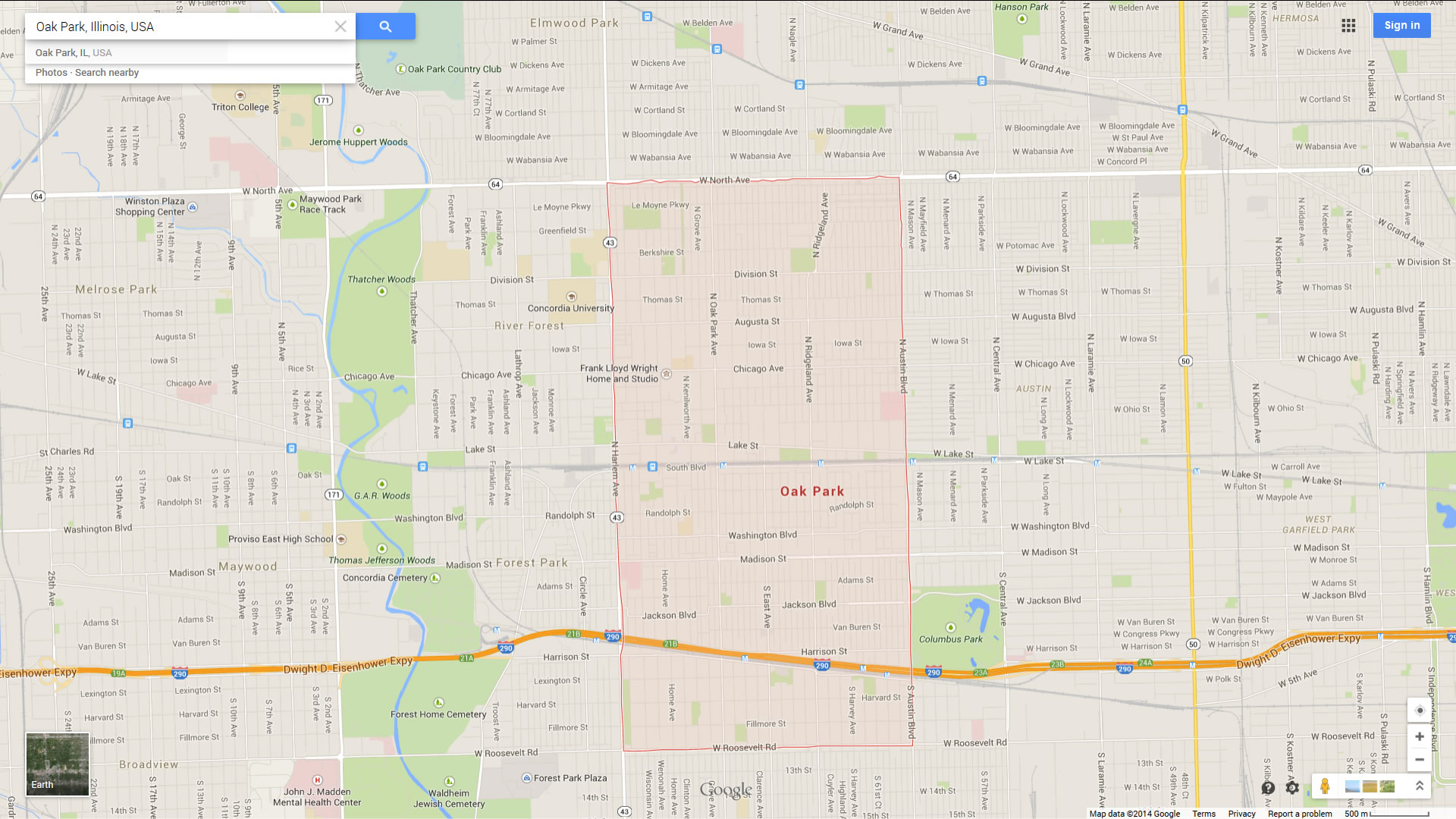 Navigate Oak Park, Illinois Map, map of Oak Park, Oak Park illinois regions map, Oak Park satellite image, towns map, road map of Oak Park.