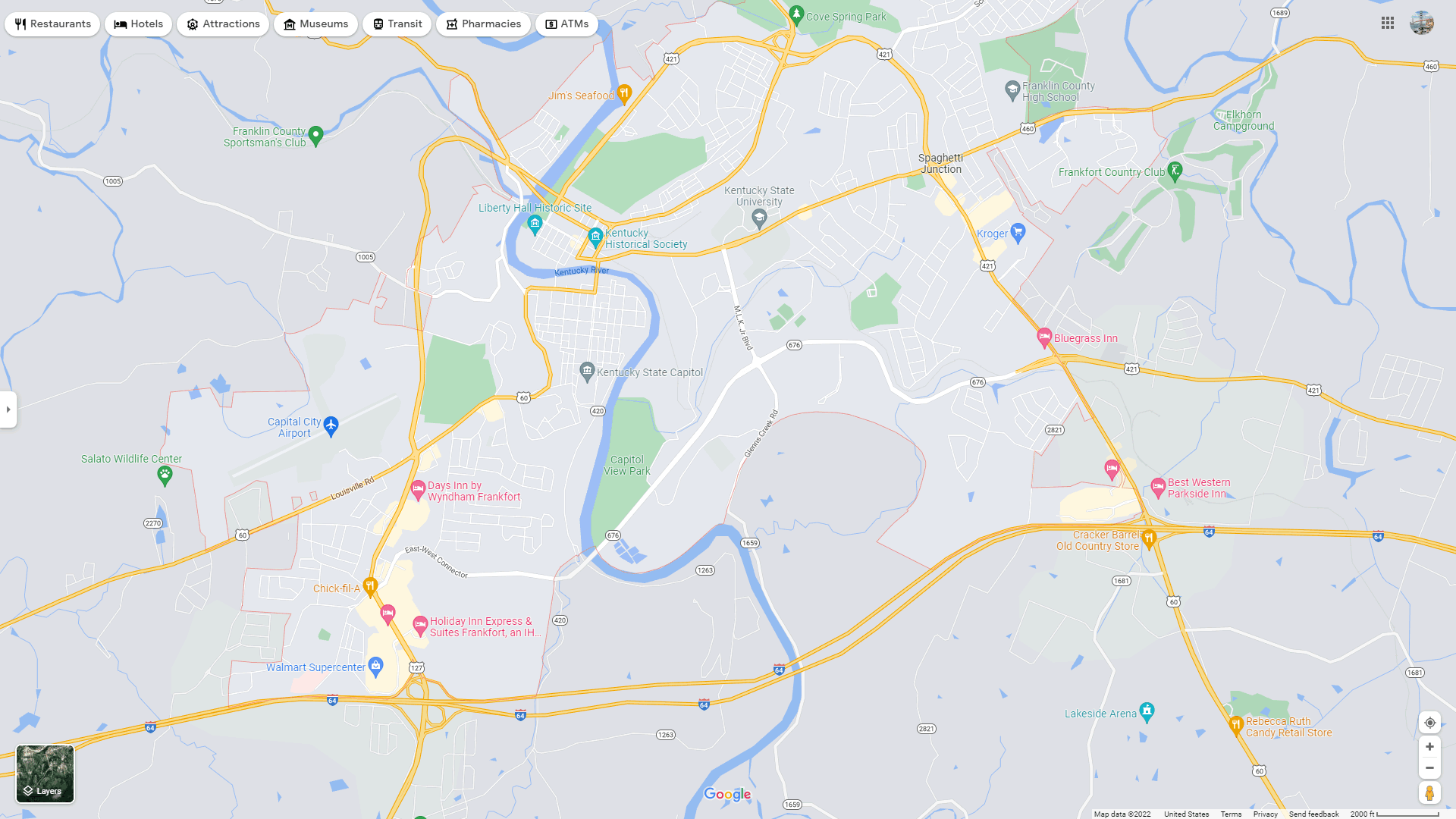 Navigate Frankfort, Kentucky Map, map of Frankfort, Frankfort Kentucky regions map, Frankfort satellite image, towns map, road map of Frankfort.