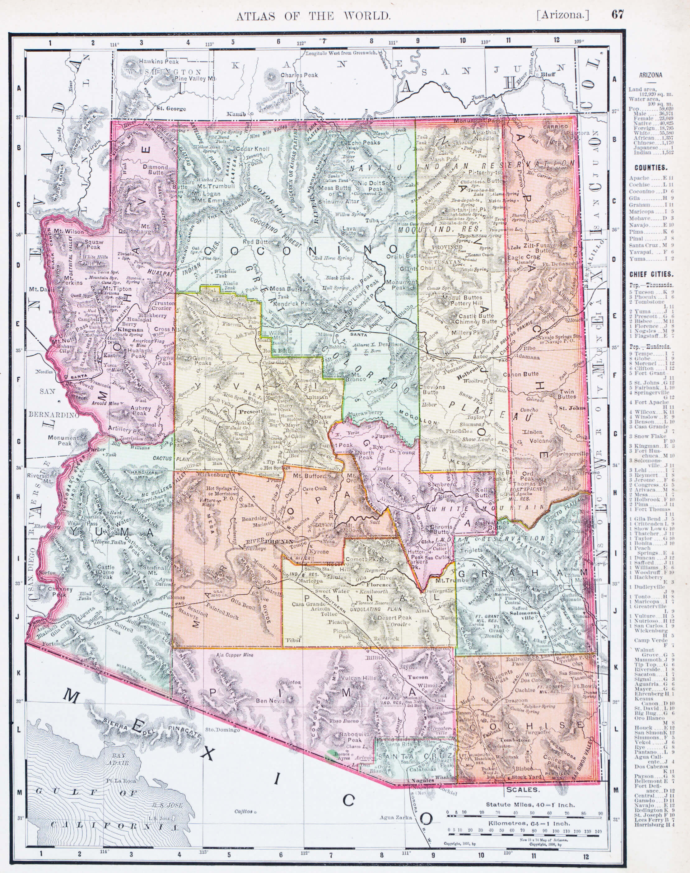 A map of Arizona, USA from Spofford's Atlas of the World, printed in the United States in 1900.