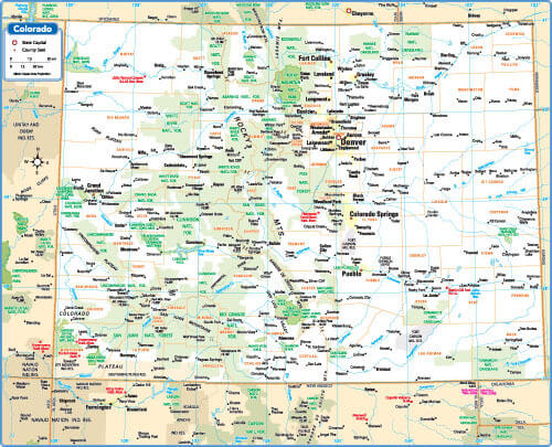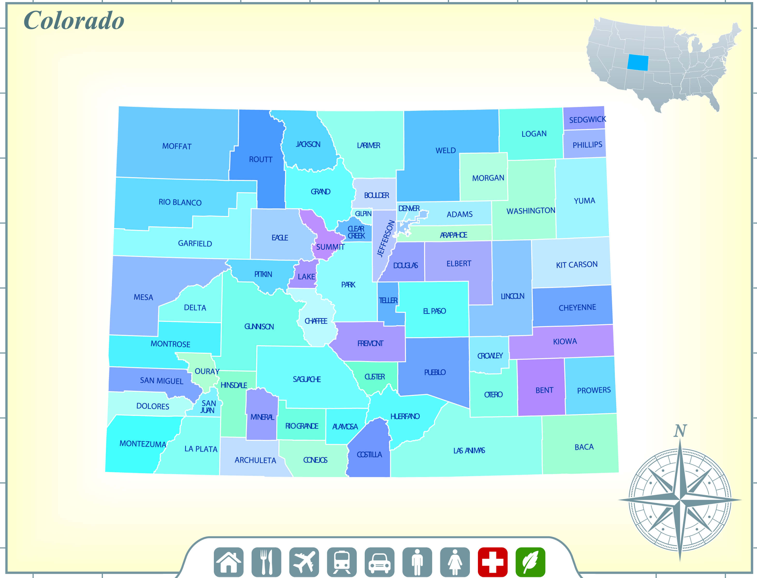 Navigate Colorado map, satellite images of the ColoradoUnited States, US states, largest cities, political map of Colorado USA, capitals and physical maps.