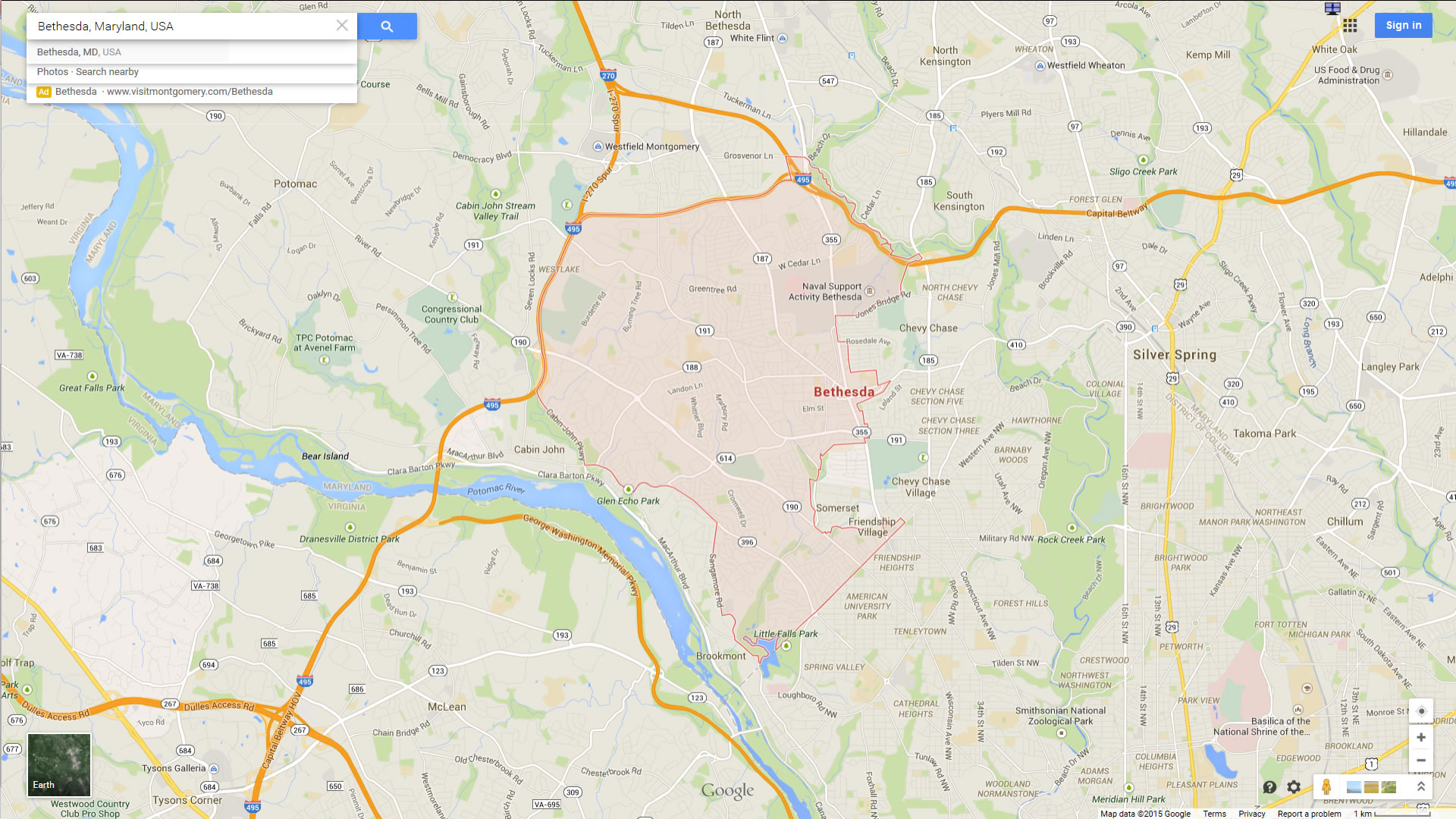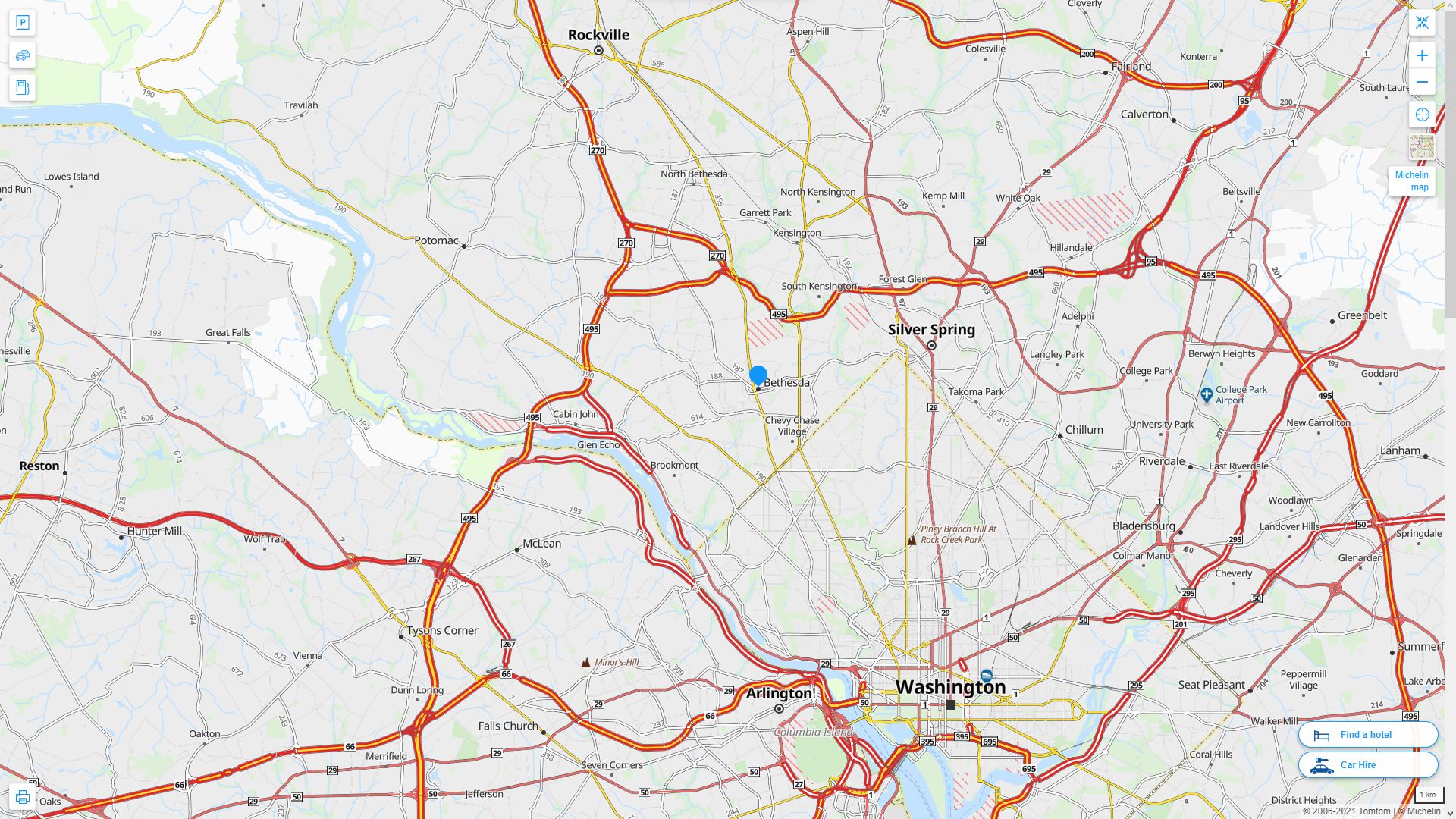 Navigate Bethesda, Maryland Map, map of Bethesda, Bethesda Maryland regions map, Bethesda satellite image, towns map, road map of Bethesda.