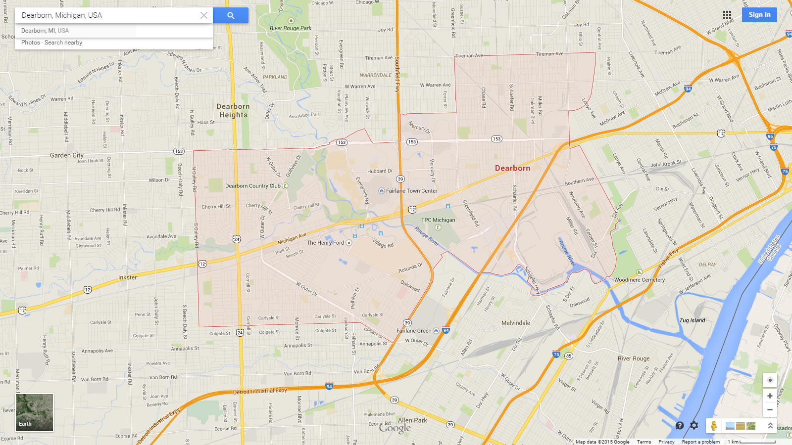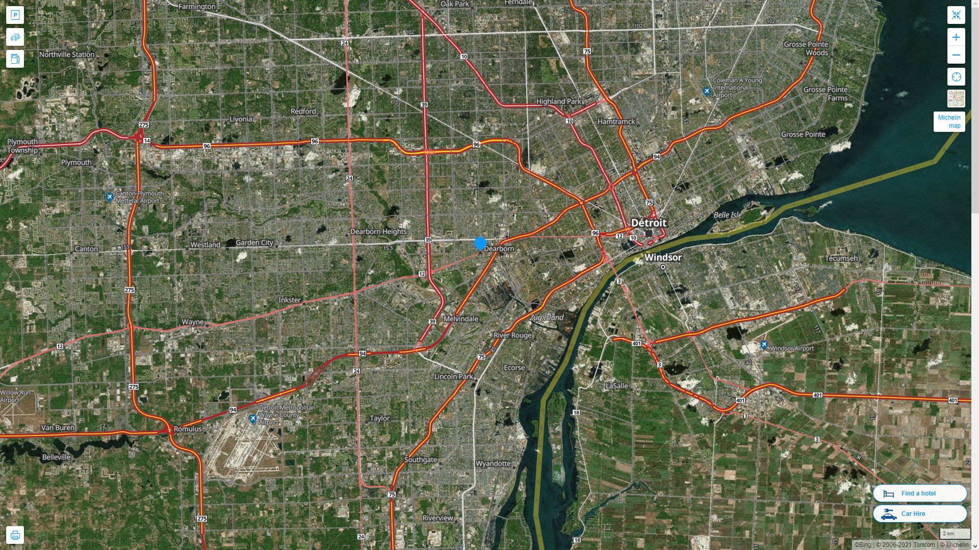 Navigate Dearborn, Michigan Map, map of Dearborn, Dearborn Michigan regions map, Dearborn satellite image, towns map, road map of Dearborn.