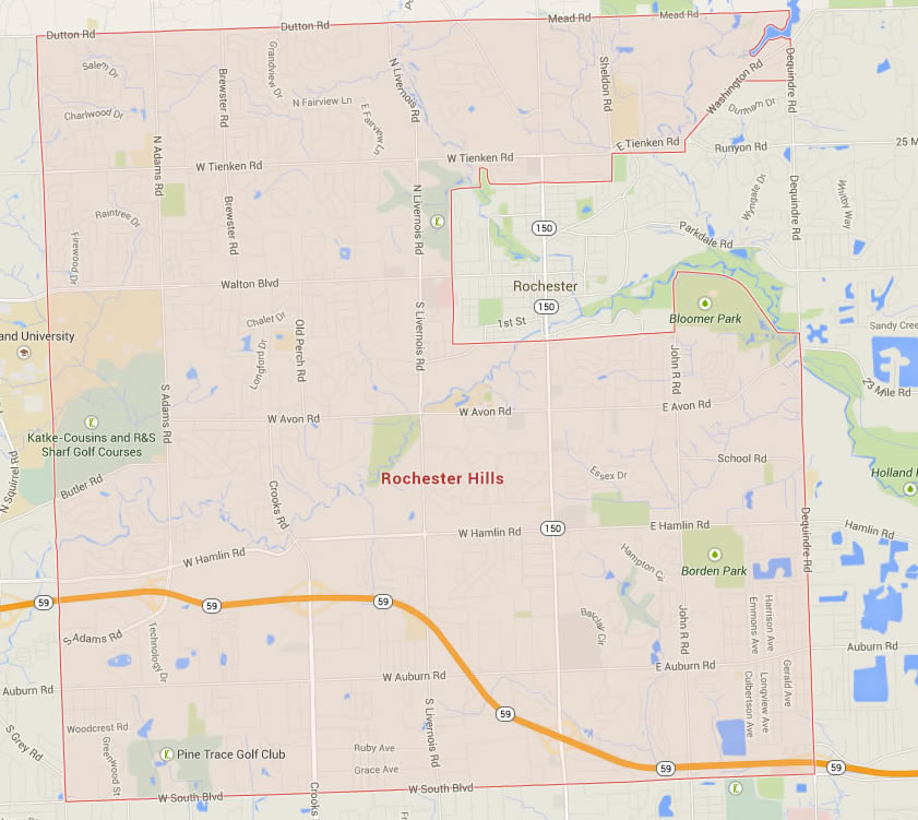 Navigate Rochester Hills, Michigan Map, map of Rochester Hills, Rochester Hills Michigan regions map, Rochester Hills satellite image, towns map, road map of Rochester Hills.