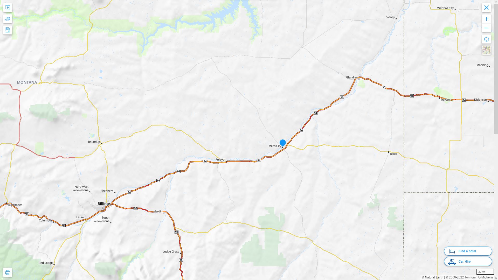 Navigate Miles City, Montana Map, map of Miles City, Miles City Montana regions map, Miles City satellite image, towns map, road map of Miles City.