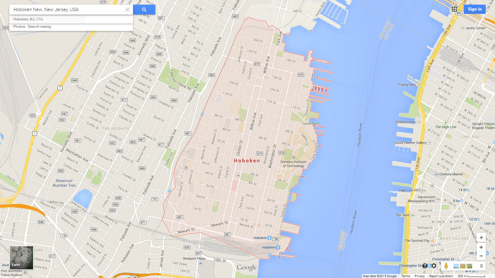 Navigate Hoboken, New Jersey Map, map of Hoboken, Hoboken New Jersey regions map, Hoboken satellite image, towns map, road map of Hoboken.