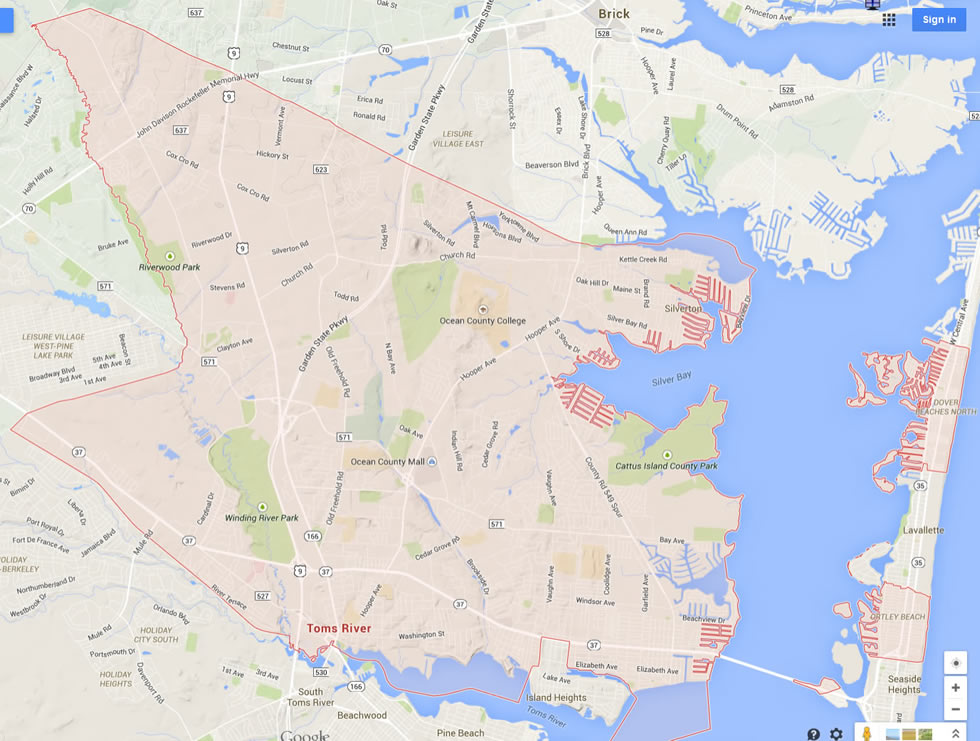 Navigate Toms River, New Jersey Map, map of Toms River, Toms River New Jersey regions map, Toms River satellite image, towns map, road map of Toms River.