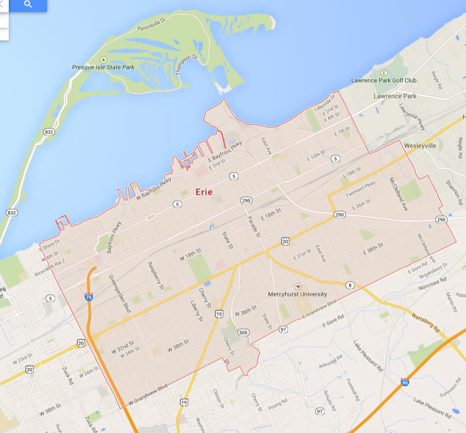 Navigate Erie, Pennsylvania Map, map of Erie, Erie Pennsylvania regions map, Erie satellite image, towns map, road map of Erie.