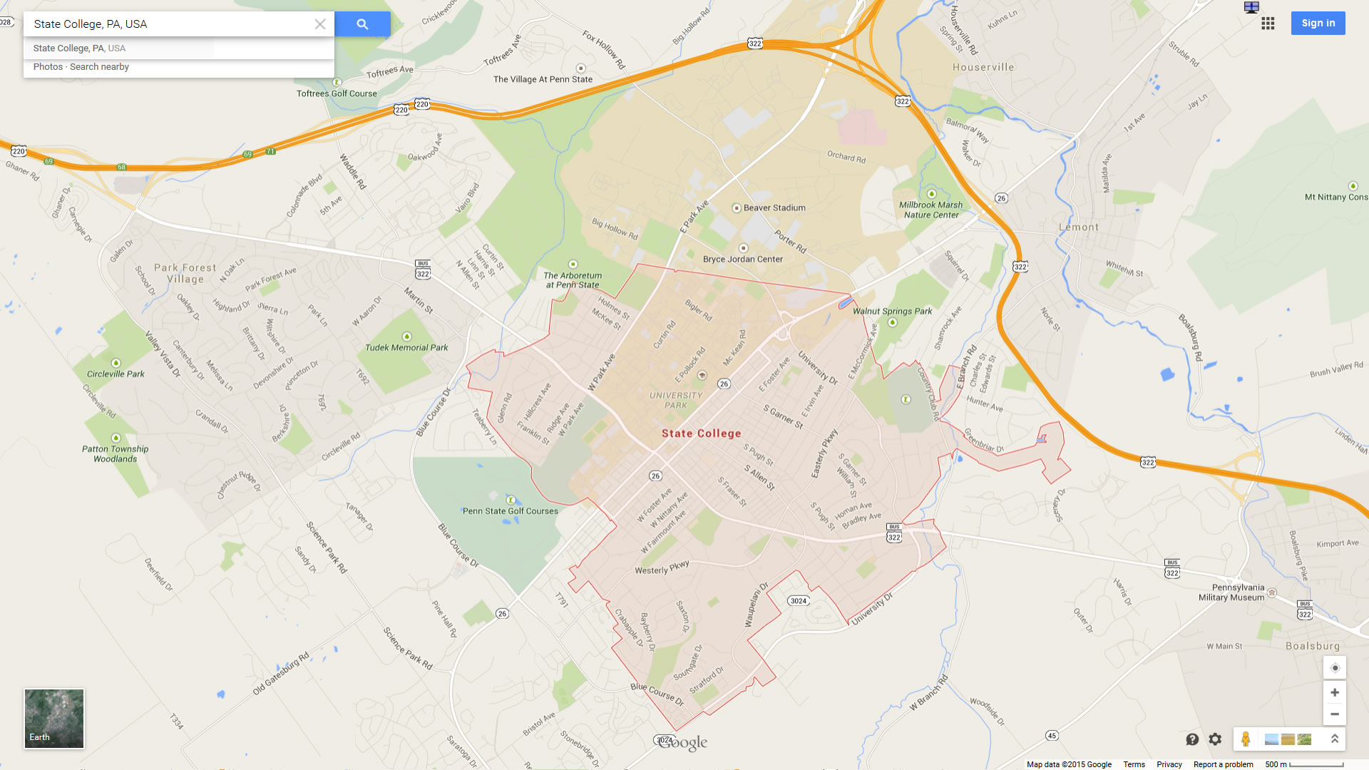 Navigate State College, Pennsylvania Map, map of State College, State College Pennsylvania regions map, State College satellite image, towns map, road map of State College.
