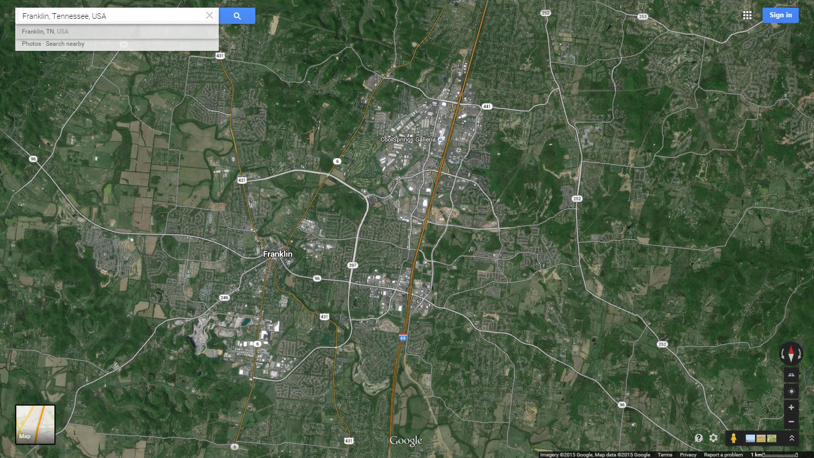Navigate Franklin, Tennessee Map, map of Franklin, Franklin Tennessee regions map, Franklin satellite image, towns map, road map of Franklin.