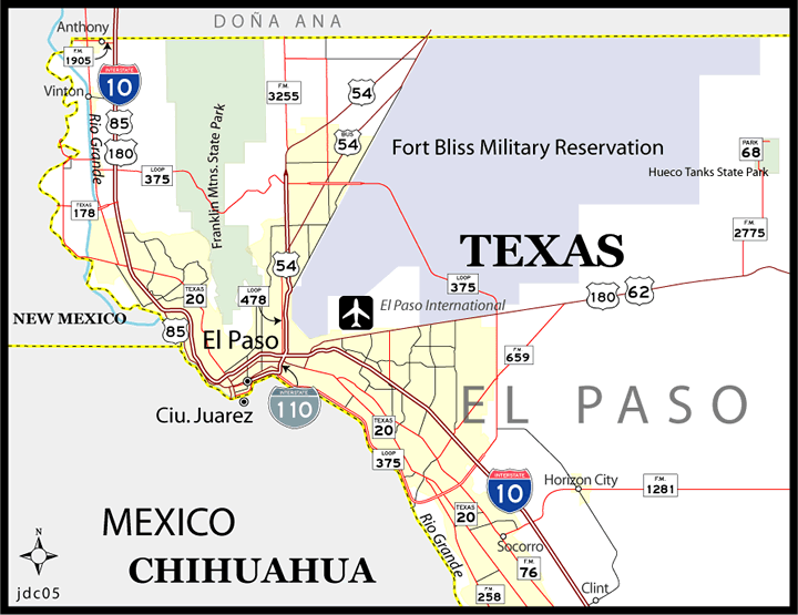Navigate El Paso, Texas Map, map of El Paso, El Paso Texas regions map, El Paso satellite image, towns map, road map of El Paso.