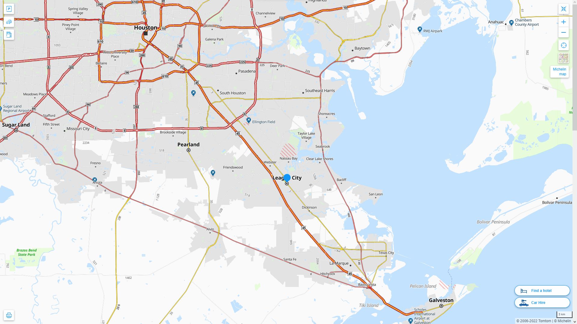 Navigate League City, Texas Map, map of League City, League City Texas regions map, League City satellite image, towns map, road map of League City.