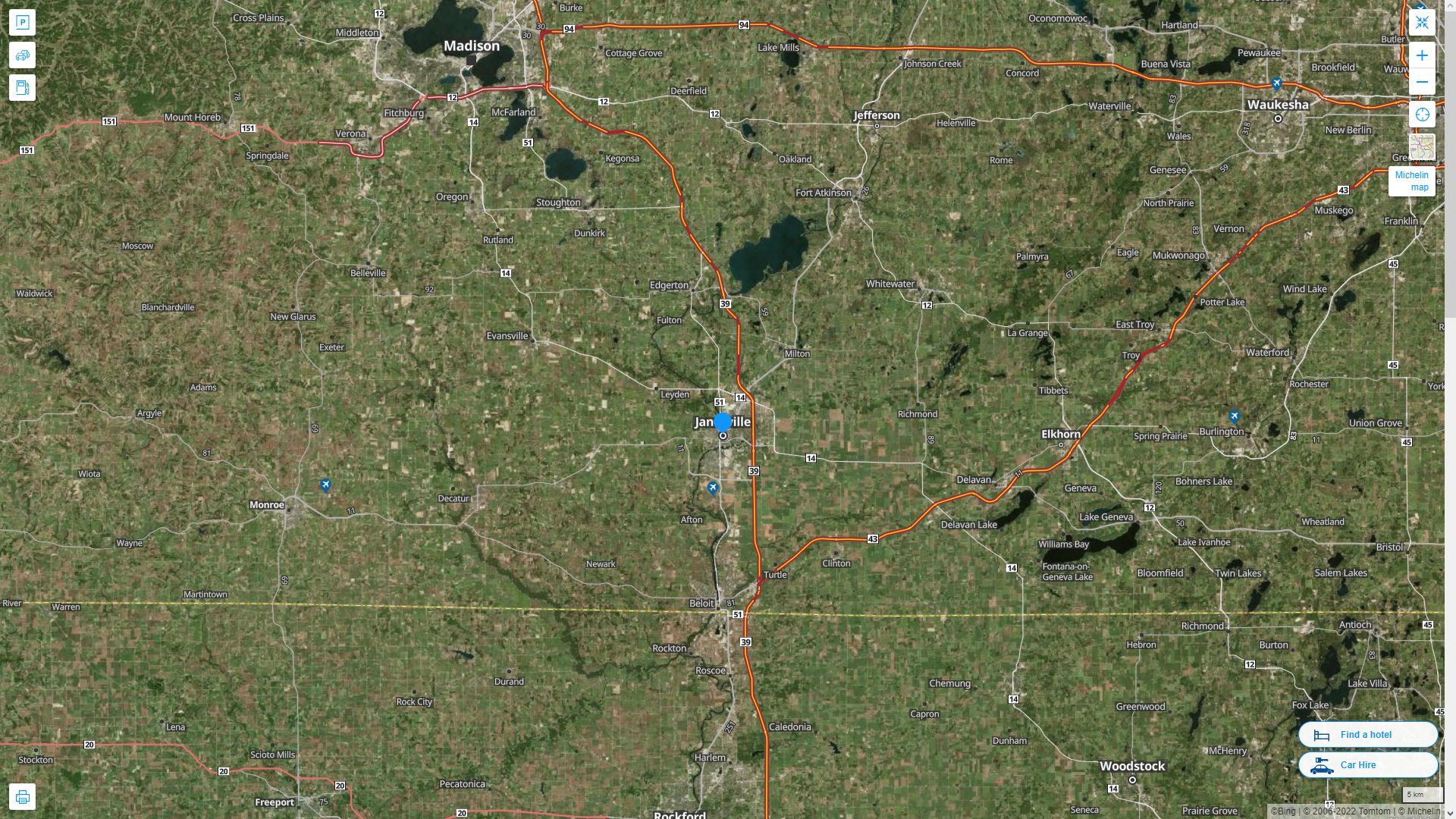 Navigate Janesville, Wisconsin Map, map of Janesville, Janesville Wisconsin regions map, Janesville satellite image, towns map, road map of Janesville.