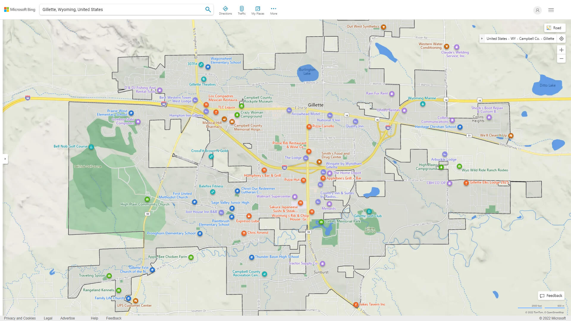 Navigate Gillette, Wyoming Map, map of Gillette, Gillette Wyoming regions map, Gillette satellite image, towns map, road map of Gillette.