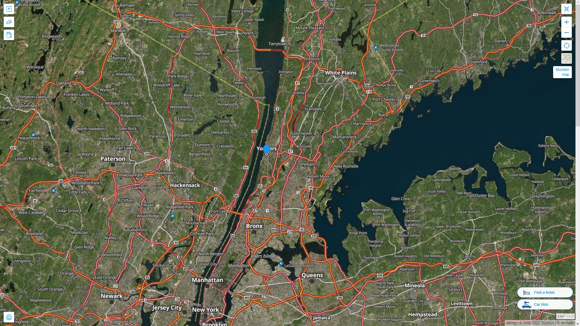 YONKERS NEW YORK HIGHWAY AND ROAD MAP WITH SATELLITE VIEW
