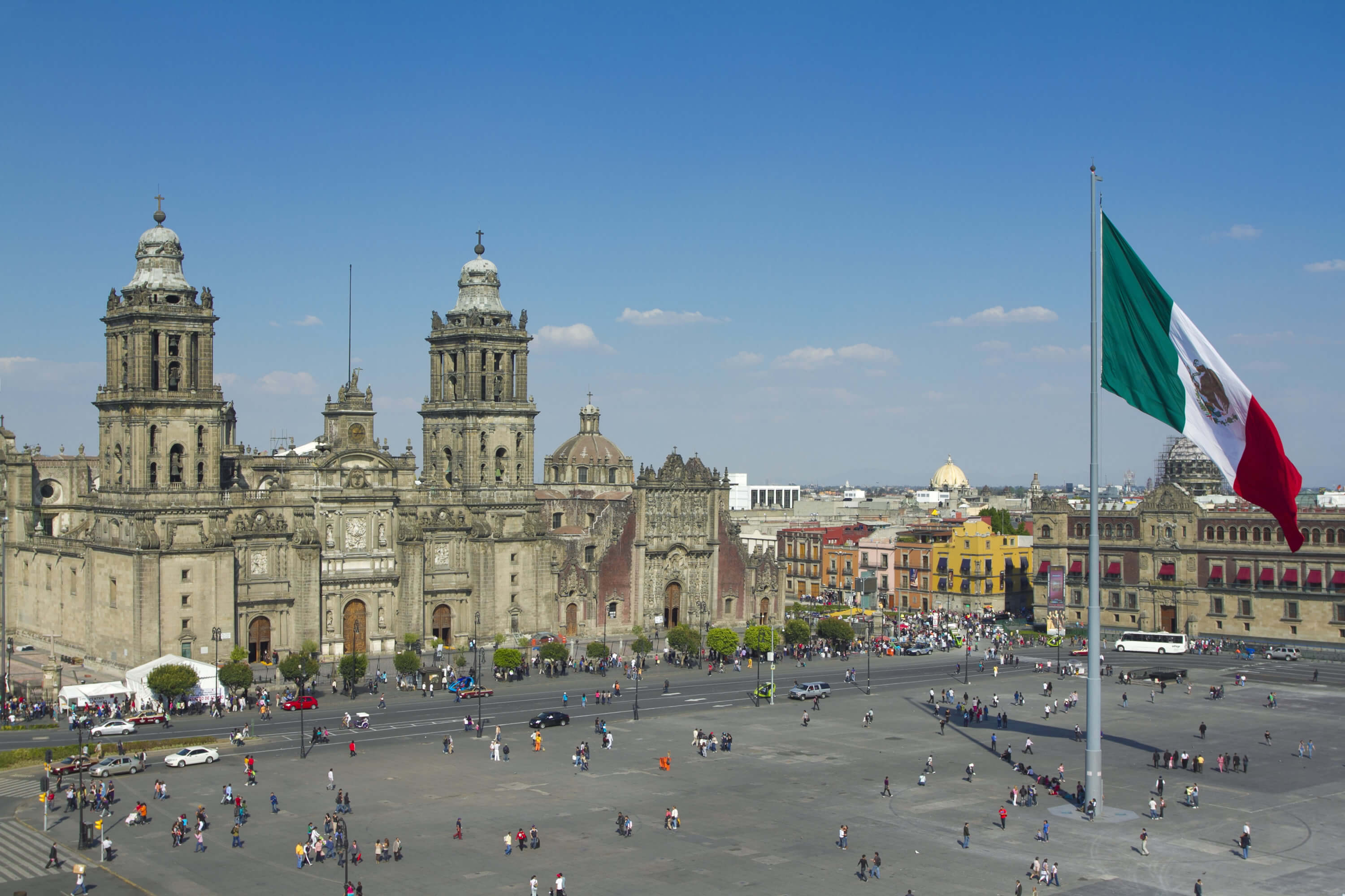 Panoramic view of Zocalo and Cathedral - Mexico City, Mexico
