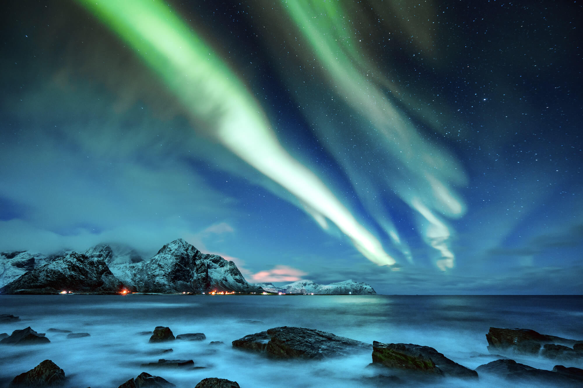 Northern Lights over the Lofoten Islands in Norway.