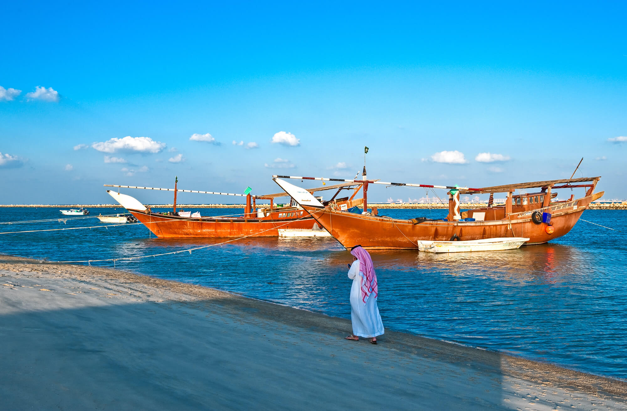 Dammam, Saudi Arabia - November 16 2008: Dow boats in the fisherman area.