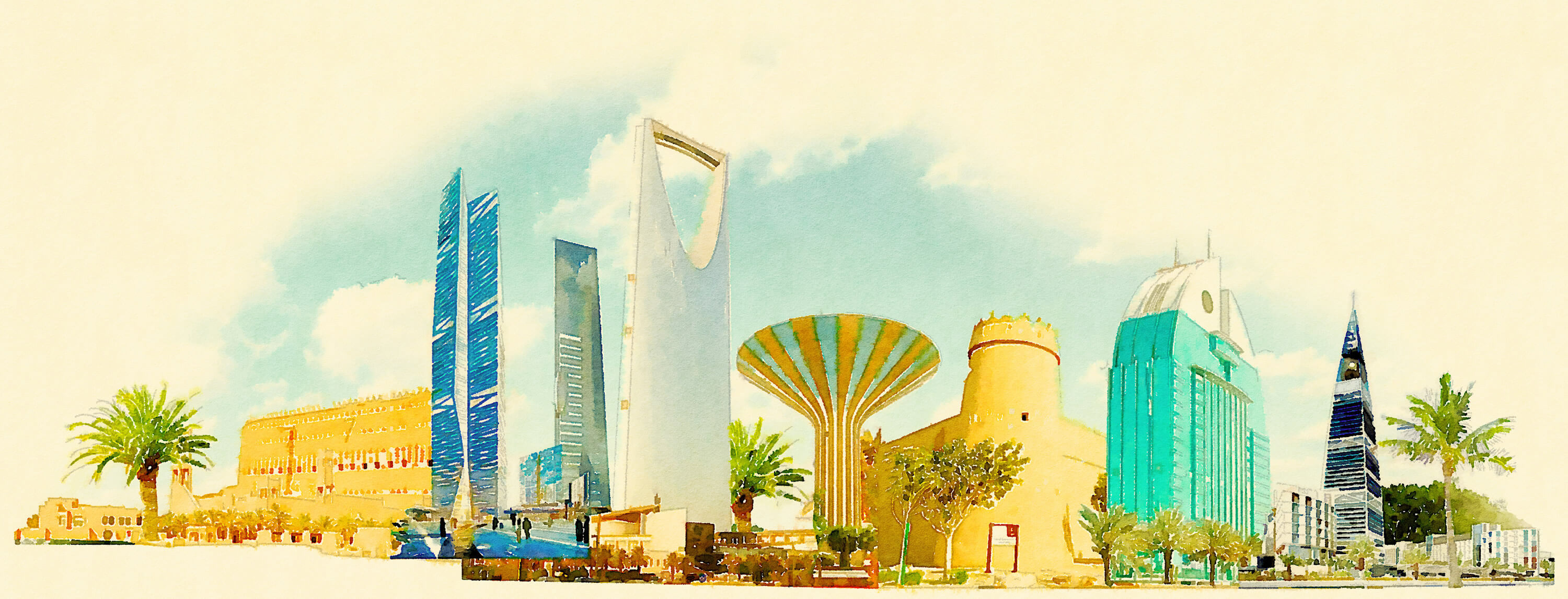Water color illustration riyadh city.