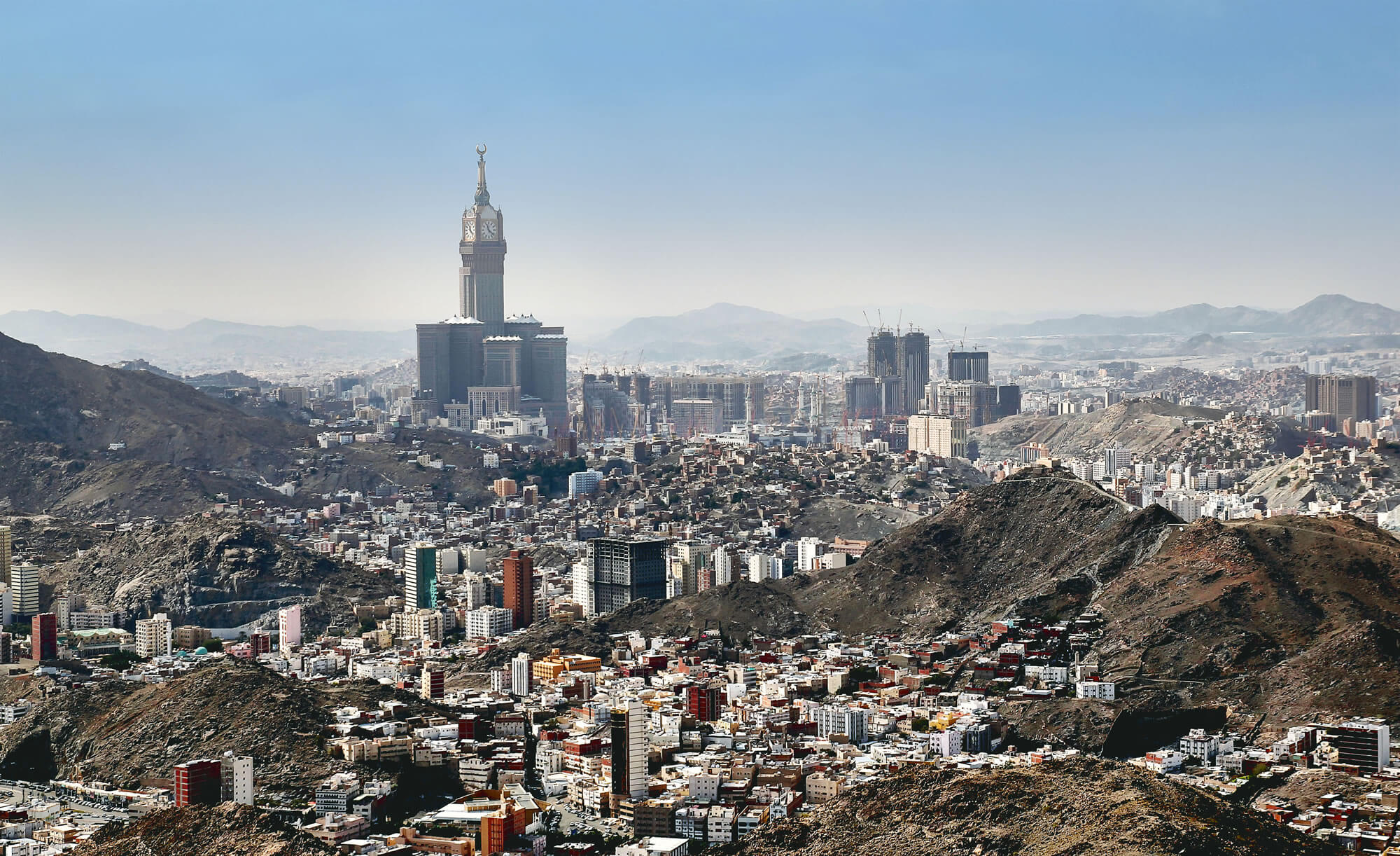 Aerial view of skyline of Mecca holy city in Saudi Arabia.