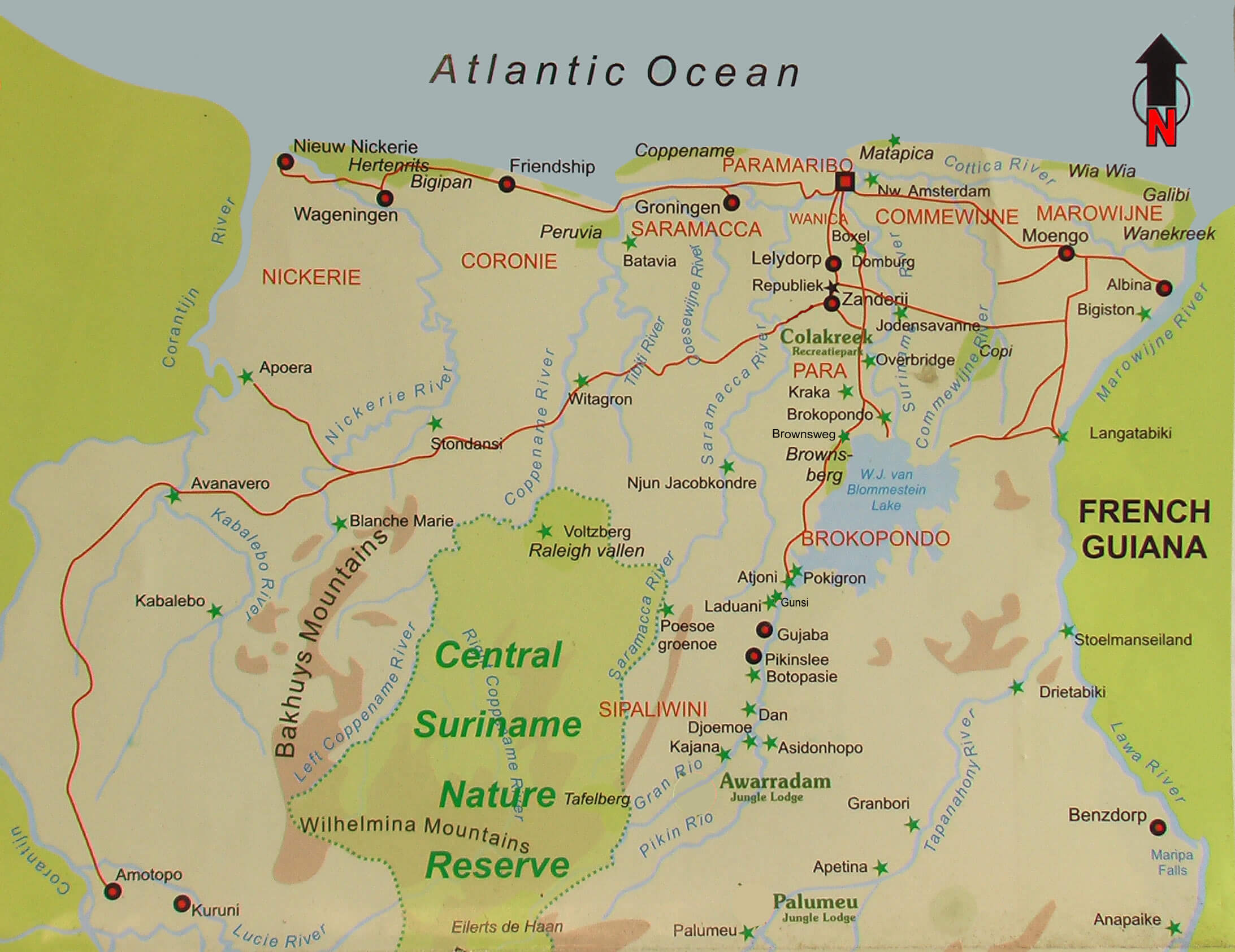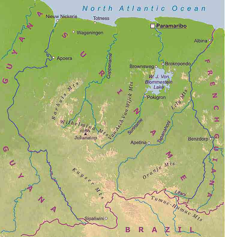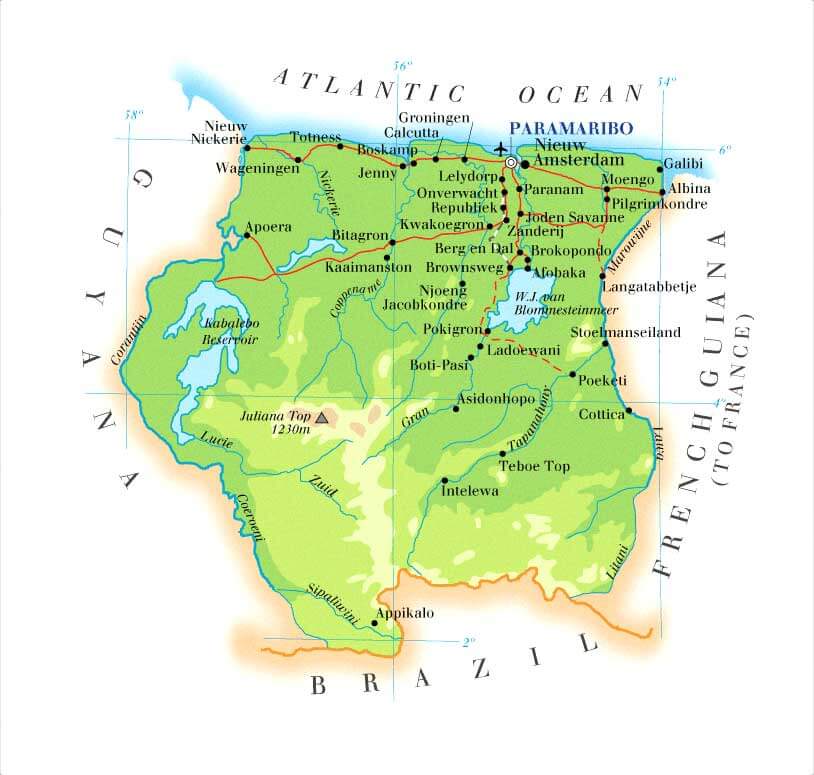 Navigate Suriname Map, Suriname countries map, satellite images of the Suriname, Suriname largest cities maps, political map of Suriname, driving directions and traffic maps.
