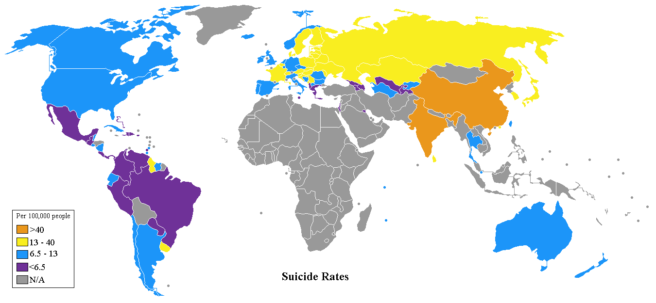 At World Suicide Rates Map page find a collection of World maps, countries political map of the World, physical maps, satellite space images of the World, population density map.
